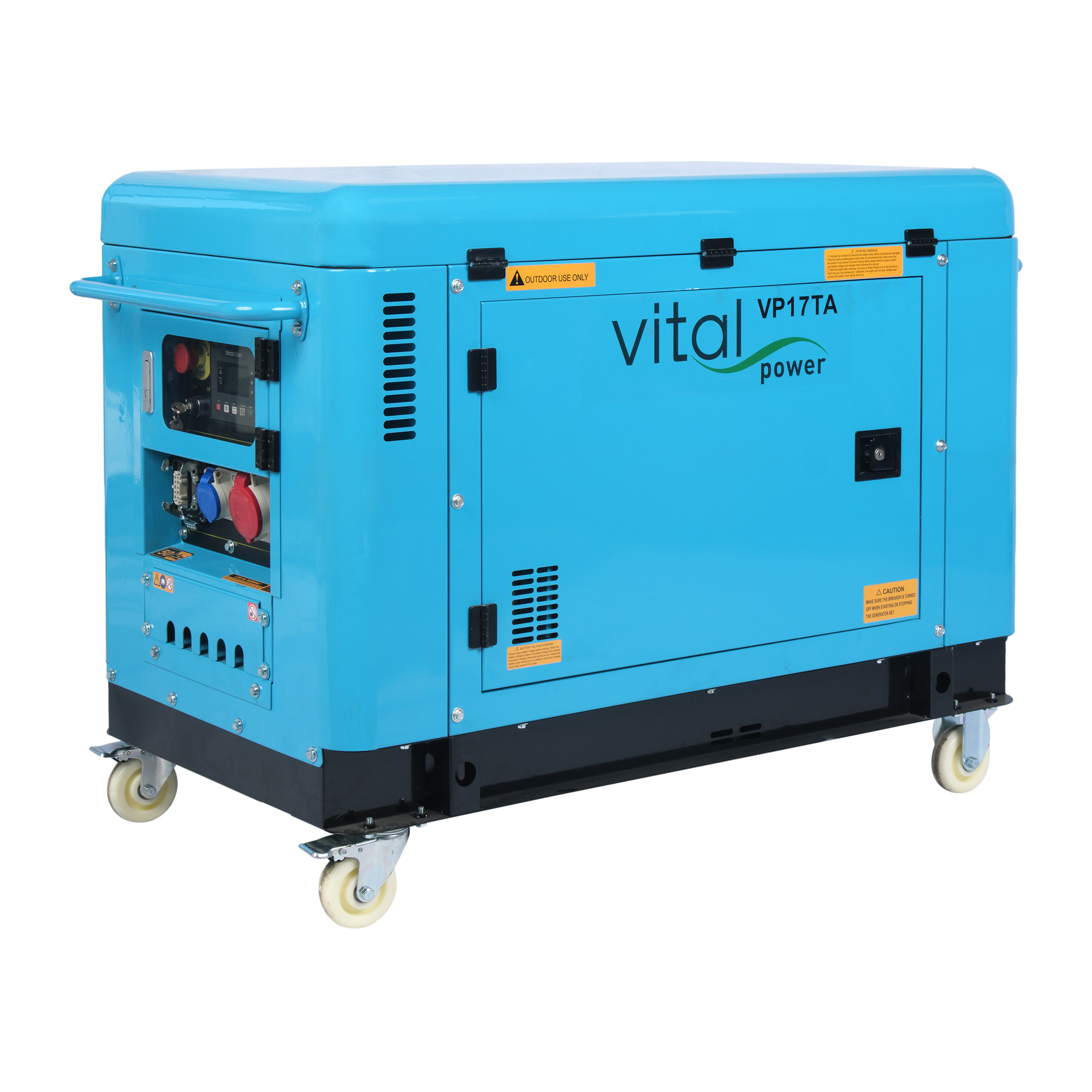 17 kVA gücündeki VP17TA modelimiz, artık Smartgen otomatik kontrol kartı ile daha akıllı! Elektrik kesildiği an otomatik olarak devreye girerek kesintisiz güç sağlar. Düşük desibel seviyesiyle sessiz çalışır, tekerlekli tasarımıyla kolayca taşınır. Profesyonel kullanıma uygun yüksek performansı sayesinde güvenle kullanılabilir.
