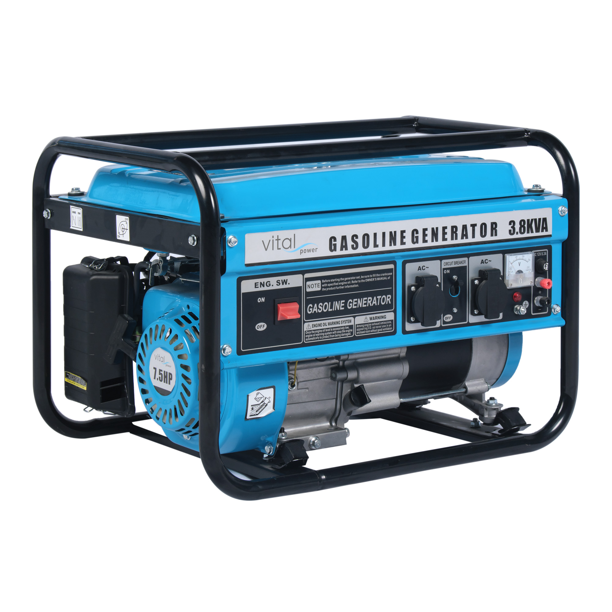 VP3.8MA | 3.8 kVA Elektrik Marşlı & Portatif JeneratörVP3.8M modelinin elektrik marşlı versiyonu olan VP3.8MA, 3.8 kVA gücünü tek dokunuşla çalıştırma konforuyla sunar. Benzinli motoru ve ultra hafif tasarımıyla en zorlu dış mekan koşullarında dahi güvenilir performans sağlar.Kompakt yapısı sayesinde aracınızda veya elinizde kolayca taşınabilir.